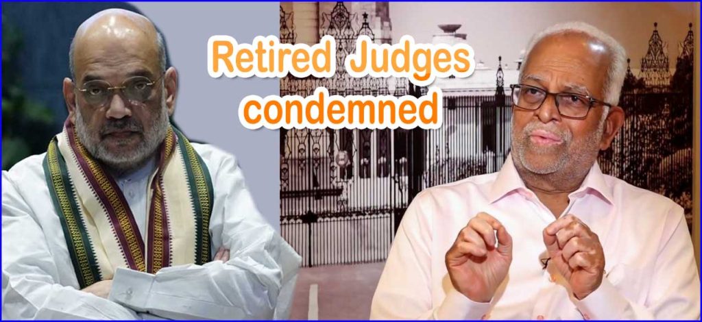 உள்துறை அமைச்சர் அமித்ஷா  இந்த பேச்சுக்கு   18 பேர் கொண்ட உச்சநீதிமன்ற மற்றும் உயர்நீதிமன்ற நீதிபதிகள் குழு கண்டனம் தெரிவித்துள்ளனர். அமித்ஷாவின் கருத்து நீதித்துறை சுதந்திரத்துக்கு எதிரானது என்றும், உச்சநீதிமன்ற தீர்ப்புக்கு பாரபட்சமான, குதர்க்கமான விளக்கத்தை அவர் அளித்திருப்பதாகவும் கண்டனத்தை பதிவு செய்துள்ளனர்.