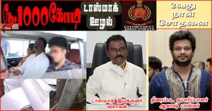 சென்னை: ரூ.1000 கோடி முறைகேடு தொடர்பாக, டாஸ்மாக் இயக்குநர் விசாகன் மற்றும் திரைப்பட தயாரிப்பாளர் வீடுகளில் 2வது நாளாக தொடரும் அமலாக்கத்துறை சோதனை நடத்தப்பட்டு வருகிறது. ரூ.1000 கோடி முறைகேடு வழக்கில் டாஸ்மாக் மேலாண் இயக்குநர் விசாகன் வீட்டில் 2வது நாளாக அமலாக்கத்துறை சோதனை நடைபெற்று வருகிறது. அதுபோல, தேனாம்பேட்டையில் உள்ள திரைப்பட தயாரிப்பாளர் ஆகாஷ் பாஸ்கரின் வீட்டிலும் 2வது நாளாக சோதனை தொடருகிறது. டாஸ்மாக்கில் பாட்டிலுக்கு 10 ரூபாய் கூடுதலாக வசூலிக்கப்படுவது மற்றும் டாஸ்மாக்கில் குறிப்பிட்ட … Continue reading ரூ.1000 கோடி முறைகேடு: டாஸ்மாக் இயக்குநர் மற்றும் திரைப்பட தயாரிப்பாளர் வீடுகளில் 2வது நாளாக தொடரும் இடி சோதனை…