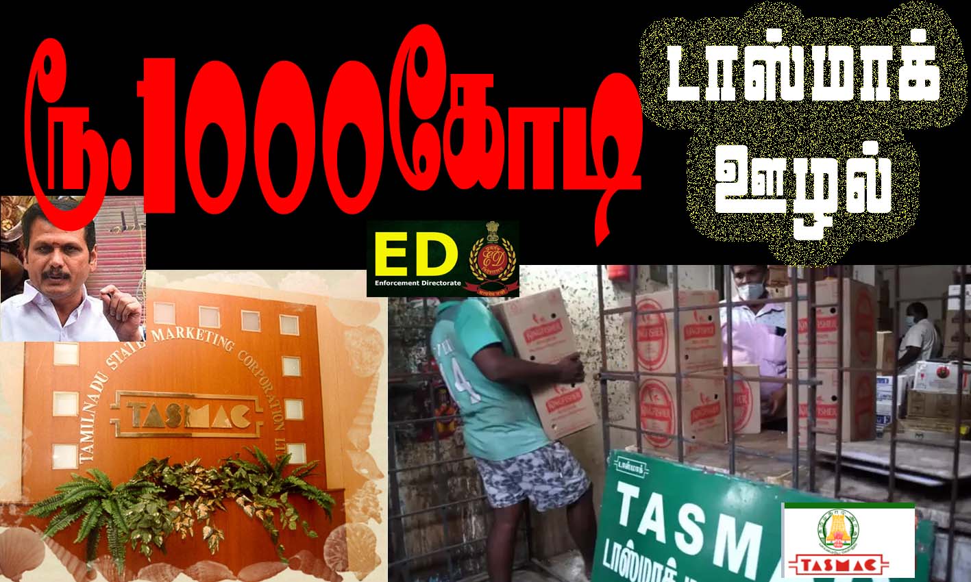 டாஸ்மாக் முறைகேடு தொடர்பாக அமலாக்கத்துறை சோதனையில் ரூ. 1000 கோடி முறைகேடு கண்டுபிடிக்கப்பட்டது. பல தனியார் நிறுவனங்கள் மற்றும் அதிகாரிகள் தொடர்புடையதாக அறிக்கை வெளியிடப்பட்டது. இதைத்தொடர்ந்து, இது சம்பந்தமான விசாரணைக்காக அமைச்சர் செந்தில் பாலாஜி, டாஸ்மாக் மதுபான சப்ளை டிஸ்டில்லரி நிறுவனங்களான எஸ்என்ஜே., கல்ஸ், அக்கார்டு, சைப்ல், ஷிவா டிஸ்டிலரி ஆகிய மது உற்பத்தி ஆலைகள் தேவி பாட்டில்ஸ், கிறிஸ்டல் பாட்டில்ஸ், ஜிஎல்ஆர், ஏஆர் ஹோல்டிங் போன்ற பாட்டில் நிறுவனங்களின் அதிகாரிகளும் கைது செய்யப்பட வாய்ப்பு இருப்பதாக கூறப்படுகிறது.
