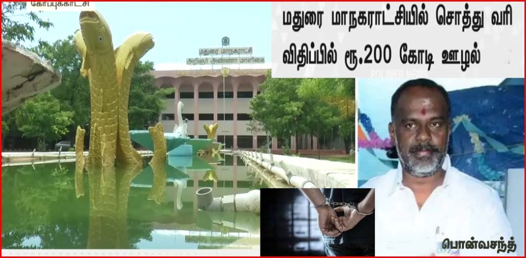 இந்த வழக்கை மதுரை டி.ஐ.ஜி. அபினவ் குமார் தலைமையிலான குழு விசாரித்து வருகிறது. வழக்கு தொடர்பாக, அரசு அதிகாரிகள் உள்பட 13 பேர் இதுவரை கைது செய்யப்பட்டு உள்ளனர். ராஜினாமா செய்த மண்டல குழு தலைவர்களில் பலர் இன்னும் கைது செய்யப்படாத நிலை உள்ளது. இந்த நிலையில், மதுரை மாநகராட்சி மேயர் இந்திராணியின் கணவர் பொன் வசந்த் சென்னையில் முகாமிட்டிருந்த நிலையில், சென்னையில் வைத்து காவல் துறையினர் கைது செய்துள்ளனர்.