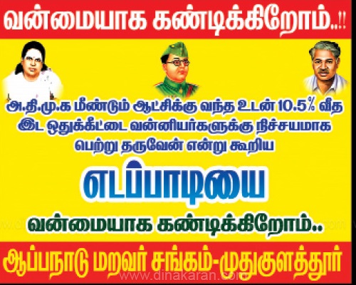 தற்போது தமிழகத்தில் தேர்தல் பிரசார சுற்றுப்பயணம் மேற்கொண்டு வரும் எடப்பாடி பழனிசாமி விழுப்புரத்தில் நடந்த கூட்டத்தில், அதிமுக மீண்டும் ஆட்சிக்கு வந்தால் வன்னியர் இட ஒதுக்கீட்டை நிறைவேற்றி தருவேன் என அறிவித்தது முக்குலத்தோர் உட்பட சீர்மரபினர் பழங்குடியினர் பட்டியலில் உள்ள 67 சமூகத்தினர் மத்தியில் கொந்தளிப்பை ஏற்படுத்தியுள்ளது.