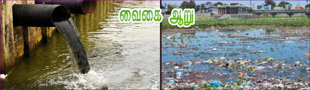 வைகை ஆற்றில் கழிவுநீர் கலக்கப்படுவதை தடுக்க கோரி, மதுரையை சேர்ந்த நாகராஜன் உயர் நீதிமன்ற மதுரை கிளையில், மாவட்ட ஆட்சியர்கள் மீது நீதிமனற் அவமதிப்பு நடவடிக்கை எடுக்க வலியுறுத்தி மனு தாக்கல் செய்திருந்தார். அவரது ” வைகை ஆறு தேனி மாவட்டம் வருசநாடு பகுதியில் உற்பத்தியாகி, தேனி, திண்டுக்கல், மதுரை, சிவகங்கை, ராமநாதபுரம் ஆகிய மாவட்டங்கள் வழியாக சென்று கடலில் கலக்கிறது. வைகையில் தேனி, மதுரை, ராமநாதபுரம் உள்ளிட்ட பகுதியில் கழிவுநீர் கலக்கிறது.