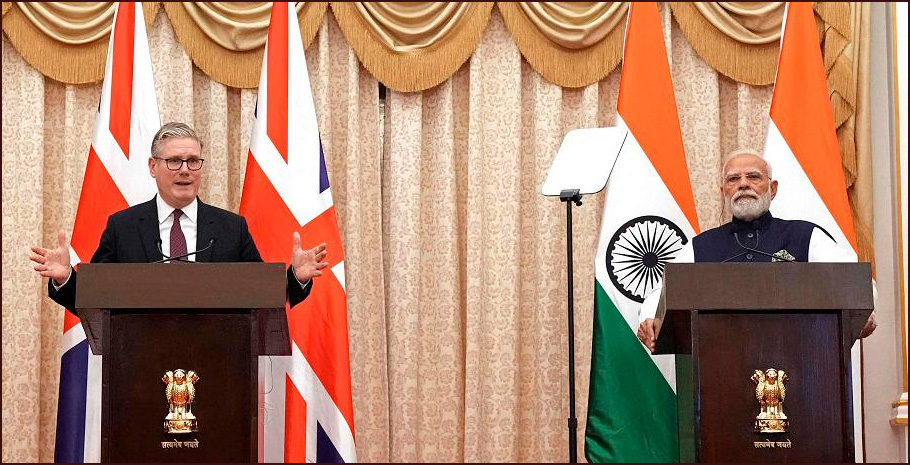 ஸ்டார்மரின் முதல் அதிகாரப்பூர்வ இந்திய வருகையின் போது, இந்தியப் பிரதமர் நரேந்திர மோடியும் பிரிட்டிஷ் பிரதமர் கெய்ர் ஸ்டார்மரும் இருதரப்பு உறவுகளில் புதிய ஆற்றலைச் செலுத்துவதாக உறுதியளித்துள்ளனர்.
