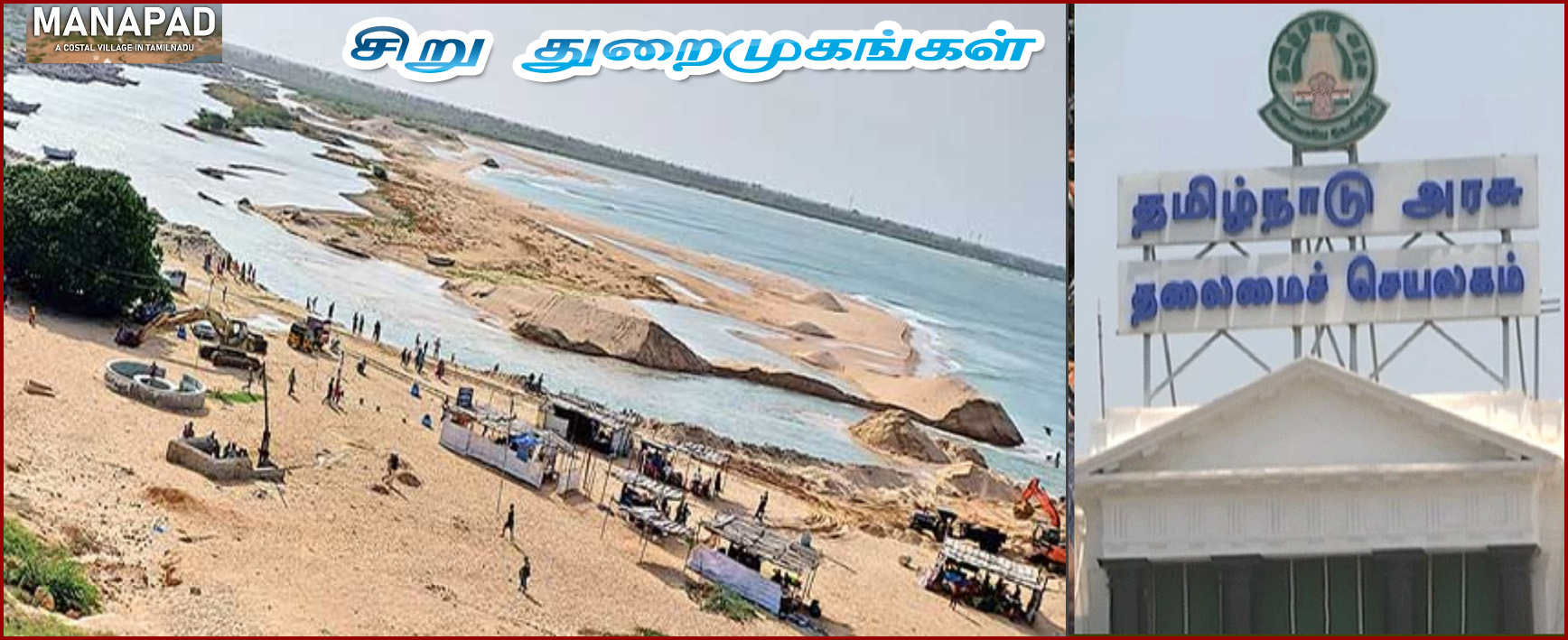 இதை தொடர்ந்து, செங்கல்பட்டு – முகையூர், பனையூர், விழுப்புரம் – மரக்காணம், கடலுார் – சிலம்பிமங்களம், நாகப்பட்டினம் – விழுந்தமாவடி, துாத்துக்குடி – மணப்பாடு, மயிலாடுதுறை – வானகிரி, கன்னியாகுமரி ஆகிய எட்டு இடங்களில், சிறு துறைமுகங்களை செயல்பாட்டிற்கு கொண்டு வர திட்டமிடப்பட்டுள்ளது.