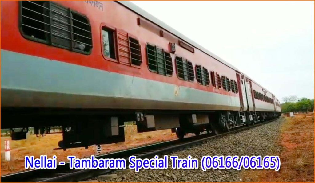 ரயில் எண் 06166 திருநெல்வேலி – தாம்பரம் சிறப்பு ரயில்: ஏப்ரல் 12, 19 மற்றும் 26, 2026 ஆகிய தேதிகளில் (ஞாயிற்றுக்கிழமைகள்) திருநெல்வேலியிலிருந்து இரவு 23.45 மணிக்குக் புறப்பட்டு, மறுநாள் காலை 11.35 மணிக்குத் தாம்பரத்தைச் சென்றடையும் வகையில் நீட்டிக்கப்பட்டுள்ளது.