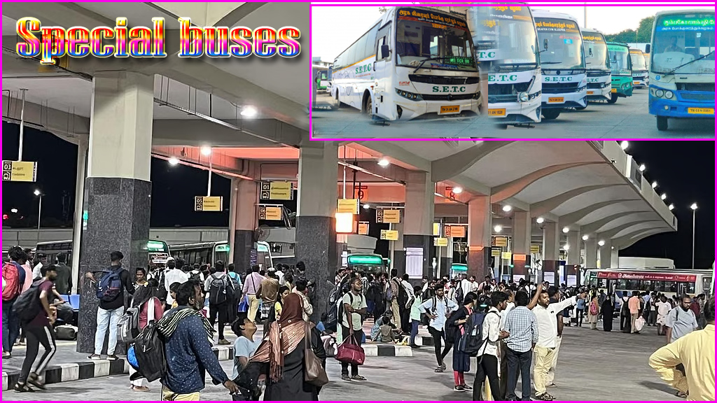 இதனை கருத்தில் கொண்டு தமிழ்நாடு அரசு போக்குவரத்துக் கழகங்கள் தினசரி இயக்கப்படும் பேருந்துகளுடன் கூடுதலாக சிறப்பு பேருந்துகளை இயக்க திட்டமிடப்பட்டுள்ளது. இதன்படி சென்னை கிளாம்பாக்கத்திலிருந்து திருவண்ணாமலை, திருச்சி, கும்பகோணம், மதுரை, திருநெல்வேலி, நாகர்கோவில், கன்னியாகுமரி, தூத்துக்குடி, கோயம்புத்தூர், சேலம், ஈரோடு, திருப்பூர் ஆகிய இடங்களுக்கு இன்று (டிச.30-ம் தேதி) 240 பேருந்துகளும், நாளை 255 பேருந்துகளும் இயக்க திட்டமிடப்பட்டுள்ளது.