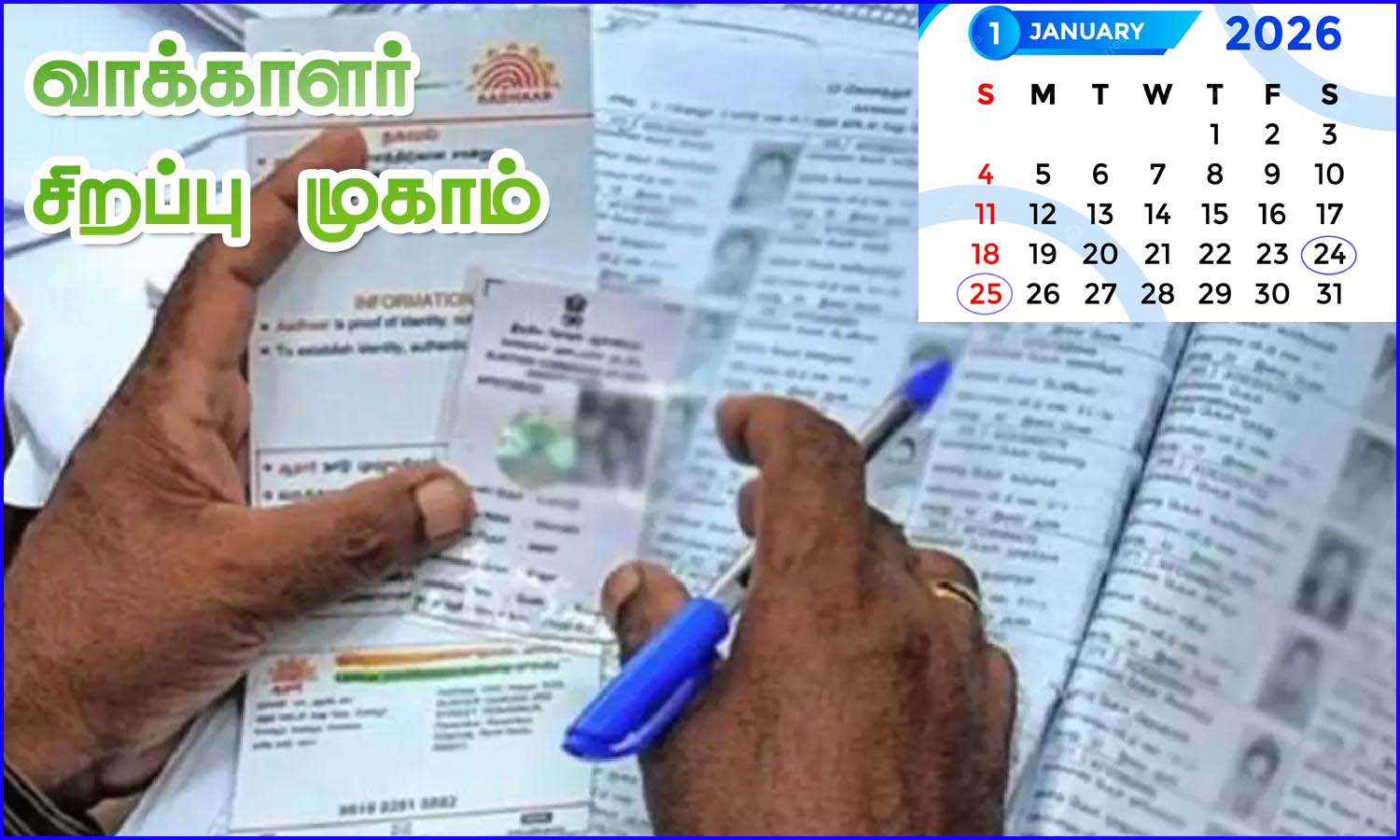 தமிழகம் முழுவதும் தற்போது நடைபெற்று வரும் ‘சிறப்பு தீவிர திருத்தப் பணியின்’ கீழ், விண்ணப்பங்களைச் சமர்ப்பிக்கக் கடைசித் தேதி ஜனவரி 30 வரை நீட்டிக்கப்பட்டுள்ளது. ஆன்லைன் மூலமாக விண்ணப்பிக்க விரும்புவோர் voters.eci.gov.in என்ற இணையதளம் அல்லது ‘Voter Helpline’ செயலி வழியாகவும் விண்ணப்பிக்கலாம்.