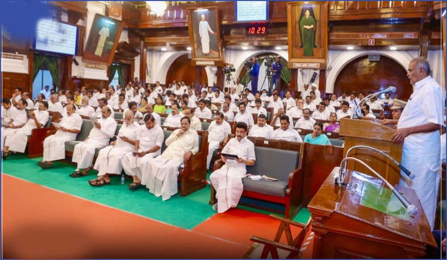 சென்னை, செம்மஞ்சேரியில் விளையாட்டு நகரம், குடிசை இல்லாத மாநிலமாக தமிழ்நாடு மாற்றப்படும்  என்றும், இருமொழி கொள்கையே தமிழ்நாட்டின் கொள்கை என்றும் ஆளுநர் உரையில் கூறப்பட்டள்ளது. இதை  சபாநாயகர் வாசித்தார்.