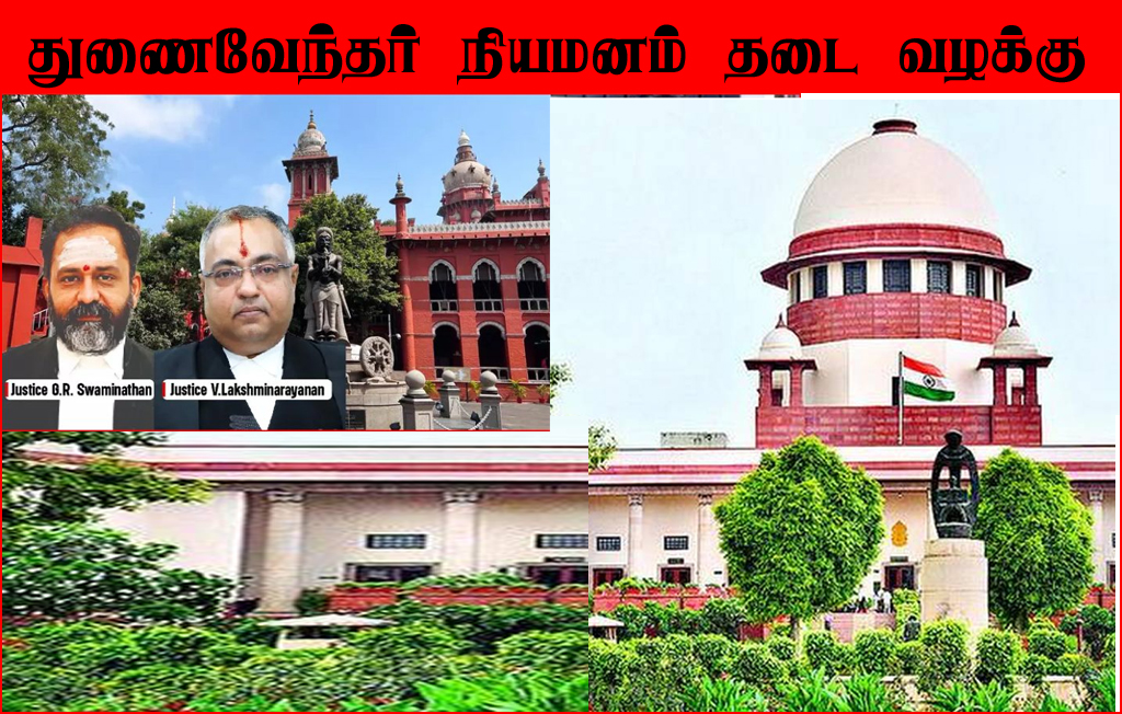 தமிழ்நாடு அரசின் துணைவேந்தர் மசோதாவுக்கு உச்சநீதிமன்றம் அனுமதி அளித்துள்ள நிலையில், அதுதொடர்பாக சென்னை உயர்நீதிமன்றத்தில் தொடரப்பட்ட வழக்கை விசாரித்த  சென்னை உயர்நீதிமன்ற நீதிபதிகள் ஜி.ஆர்.சுவாமிநாதன், வி.லட்சுமி நாராயணன் அமர்வு, அந்த சட்டத்துக்கு இடைக்கால தடை விதித்து உள்ளது. இது தமிழ்நாடு அரசுக்கு அதிர்ச்சியை ஏற்படுத்தி உள்ளது.
