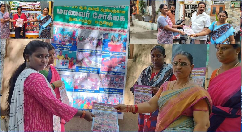 இதைத்தொடர்ந்து அரசு மற்றும் மாநகராட்சி பள்ளிகளில் மாணவர் சேர்க்கையும் அதிகரிக்க பல்வேறு நடவடிக்கைகளை எடுத்து வருகிறது. கடந்த ஒரு மாதத்திற்கு முன்பாகவே மாணவர்கள் சேர்க்கைக்காக ஆசிரியர்கள் வீடு வீடாக சென்று பெற்றோர்களை சந்தித்து மாணவர்களை அரசு பள்ளிகளில் சேர்க்க நடவடிக்கை எடுத்து வருகின்றன. அதுபோல தனியார் பள்ளிகளில் அதிக கட்டணம் செலுத்துவதை தவிர்த்துவிட்டு அரசு பள்ளிகளில் சேர்க்க வலியுறுத்தி வருகின்றனர்.