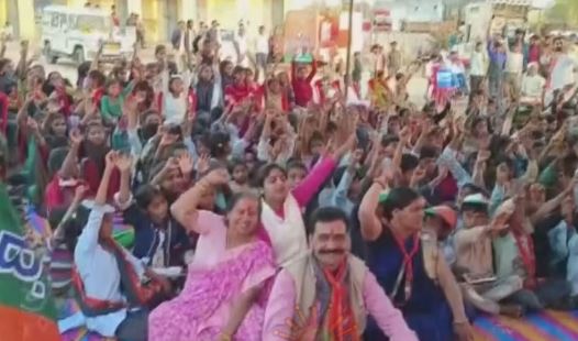 ஜன் ஆக்ரோஷ் யாத்திரையில் பாஜக எம்.எல்.ஏ செய்த செயலால் சர்ச்சை ஏற்பட்டுள்ளது.