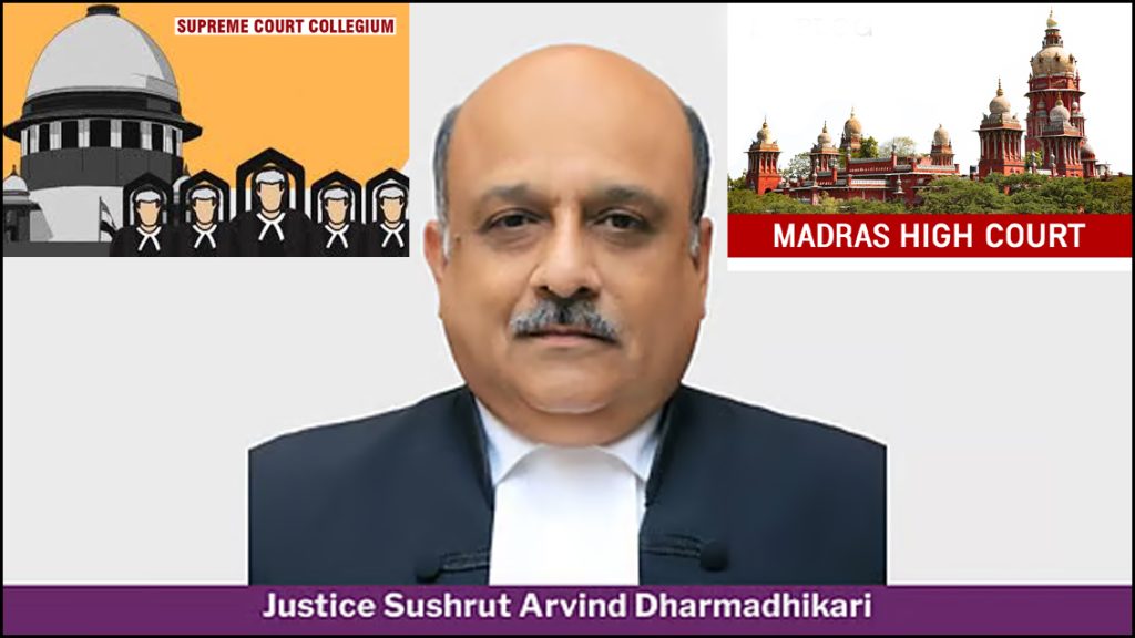 சென்னை உயர் நீதிமன்றத்தின் தற்போதைய தலைமை நீதிபதி மனிந்திர மோகன் ஸ்ரீவஸ்தவாவின் பதவிக் காலம் விரைவில் நிறைவடைய உள்ளது. இதையடுத்து, கேரள உயர் நீதிமன்றத்தின் நீதிபதியாக பதவி வகித்து வந்த சுஷ்ருத் அரவிந்த் தர்மதிகாரியை சென்னை உயர் நீதிமன்றத்தின் தலைமை நீதிபதியாக நியமிக்க, உச்ச நீதிமன்ற கொலிஜியம் பரிந்துரைத்துள்ளது.