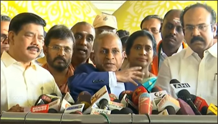 .இந்த நிலையில், லண்டனில் சிம்பொனி இசை நிகழ்ச்சியை முடித்த இசைஞானி இளையராஜா இன்று காலை விமானம் மூலம் சென்னை திரும்பினார். அவருக்கு சென்னை விமான நிலையத்தில் உற்சாக உற்வேற்பு அளிக்கப்பட்டது.