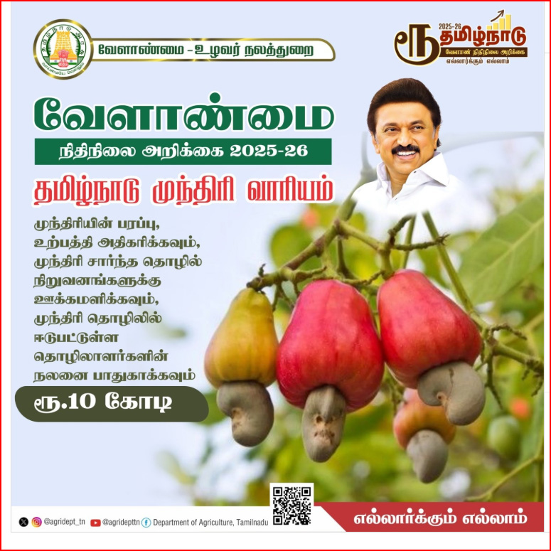 தமிழ்நாடு ஏற்கனவே வேளாண் பட்ஜெட்டில் அறிவித்தபடி, தமிழ்நாடு முந்திரி வாரியம் எனும் தனி வாரியம் உருவாக்கம் செய்யப்பட்டு உள்ளதாக வேளாண் துறை அமைச்சர் எம்.ஆர்.கே.பன்னீர்செல்வம் அறிவிப்பு வெளிட்டுள்ளார்.