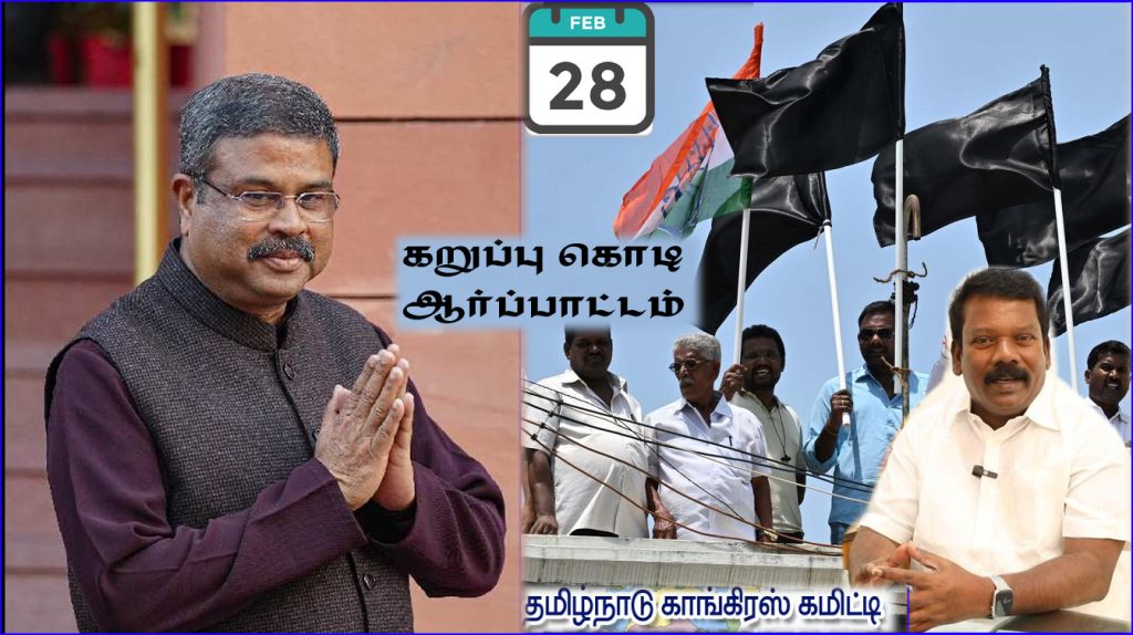 சென்னை: சென்னை வரும் மத்திய கல்விஅமைச்சர் தர்மேந்திர தானுக்கு எதிராக கறுப்புகொடி ஆர்ப்பாட்டம் நடைபெறும் என தமிழ்நாடு காங்கிரஸ் கமிட்டி தலைவர் செல்வ பெருந்தகை அறிவிப்பு வெளியிட்டு உள்ளார்.