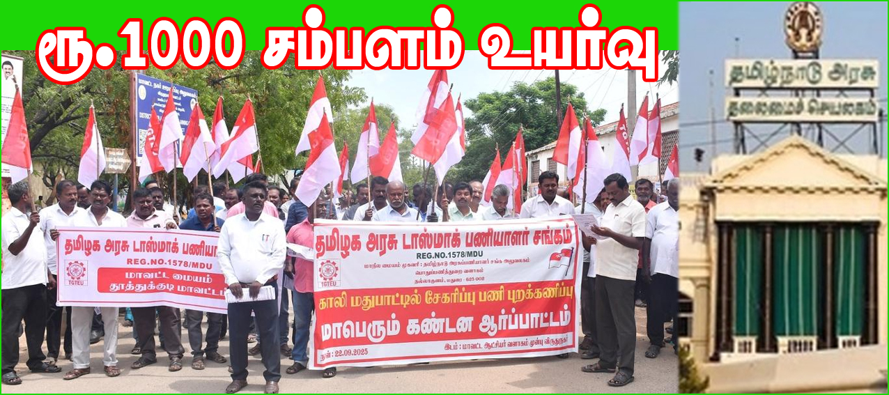 சென்னை: டாஸ்மாக் பணியாளார்களுக்கு ரூ.1000 சம்பள உயர்வு வழங்கப்படுவதாக அறிவித்துள்ள தமிழ்நாடு அரசு, இந்த சம்பளம் உயர்வு ஏப்ரல் 1முதல் அமலுக்கு வரும் என குறிப்பிட்டுள்ளது.