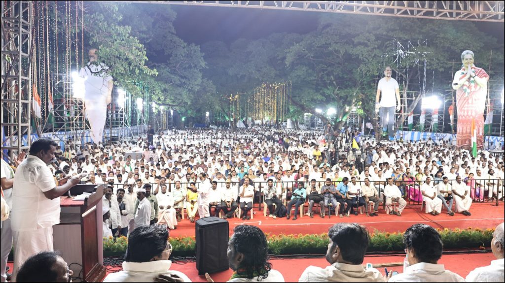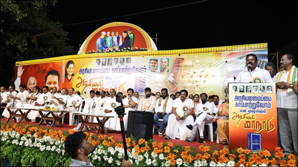 சென்னை: அரசியலமைப்பு சட்டத்தை அழிக்க துடிக்கும் மோடி அரசை எதிர்க்கும் வழியை இந்தியாவுக்கு தமிழகம் எடுத்துக்காட்டியிருக்கிறது என்று சென்னையில் நடைபெற்ற தமிழ்நாடு காங்கிரஸ் கட்சியின் பொதுக்கூட்டத்தில் அகில இந்திய காங்கிரஸ் மேலிடப் பொறுப்பாளர் கிரிஷ் சோடங்கர் கூறினார்.