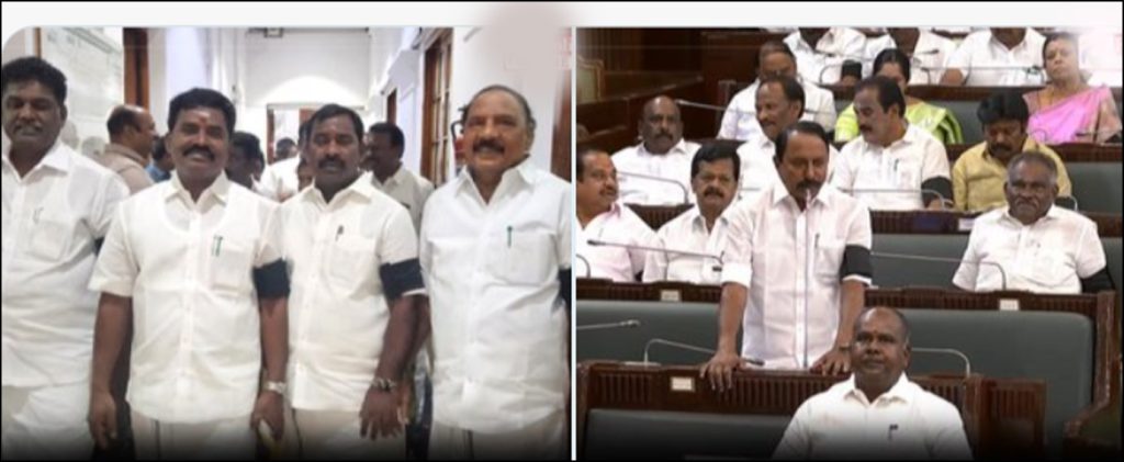 தமிழக சட்டப்பேரவை 2ம் நாள் கூட்டம் கூடியது கிட்னி திருட்டு,  கரூர் சம்பவங்களை கண்டித்தும், அதுகுறித்து கேள்வி எழுப்ப எதிர்க்கட்சிகள் திட்டம்மிட்டு உள்ளனர்.  அதற்காகவே கருப்பு பட்டை அணிந்து வந்துள்ளதாக தெரிவித்துள்ளனர்.