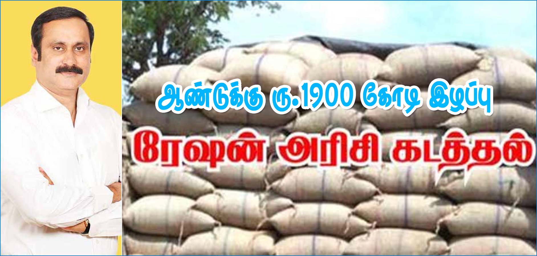 தமிழ்நாட்டில் ஏழை மக்களுக்கு வழங்கப்பட வேண்டிய அரிசியில் ரூ.1900 கோடி மதிப்புள்ள 5.2 லட்சம் டன் அரிசி கடத்திச் செல்லப்படுவதை மன்னிக்கவே முடியாது. அரசு மற்றும் அரசுத்துறை அதிகாரிகளின் துணையின்றி இந்தக் கடத்தல் நடைபெற்றிருக்க வாய்ப்பே இல்லை என்று தான் தோன்றுகிறது. இதே காலக்கட்டத்தில் வெறும் ரூ.2.4 கோடி மதிப்புள்ள 42,500 டன் கடத்தல் அரிசியை மட்டும் தான் தமிழக அரசு பறிமுதல் செய்திருப்பதாக புள்ளிவிவரங்கள் தெரிவிக்கின்றன. இந்தக் கடத்தல் தொடர்பாக ஒரு சில நியாயவிலைக்கடை ஊழியர்கள் தவிர வேறு யார் மீது நடவடிக்கை எடுக்கப்படவில்லை.