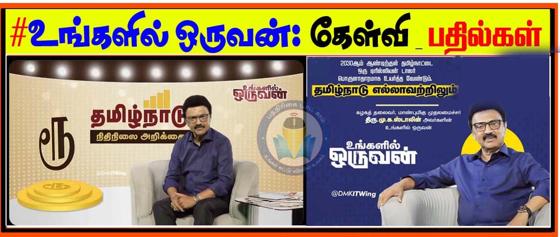 “இது பட்ஜெட் பற்றிய உங்களில் ஒருவன்!” என்ற தலைப்புடன் தமிழ்நாட்டில் நிதிநிலை அறிக்கை வெளியீட்டிற்கு பின்னான நிலவரம் குறித்து விரிவான உரையாடல் நிகழ்த்திய முதலமைச்சர் மு.க.ஸ்டாலின். கேள்வி, பதில்கள் பின்வருமாறு,
