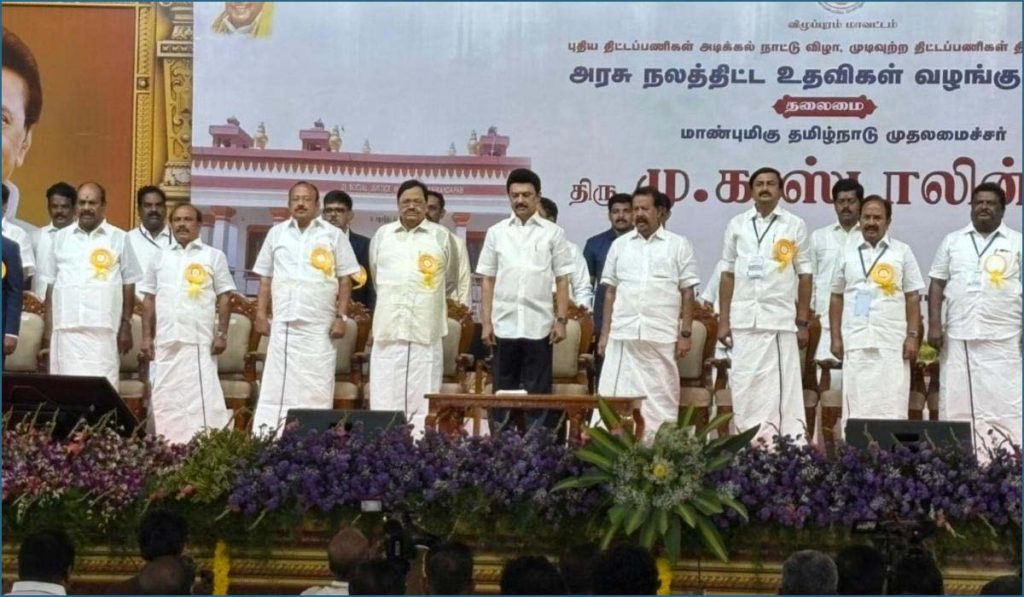 மேலும், ரூ.324 கோடியில் 35,003 பயனாளிகளுக்கு அரசு நலத்திட்ட உதவிகளை முதலமைச்சர் மு.க.ஸ்டாலின் வழங்கினார்.