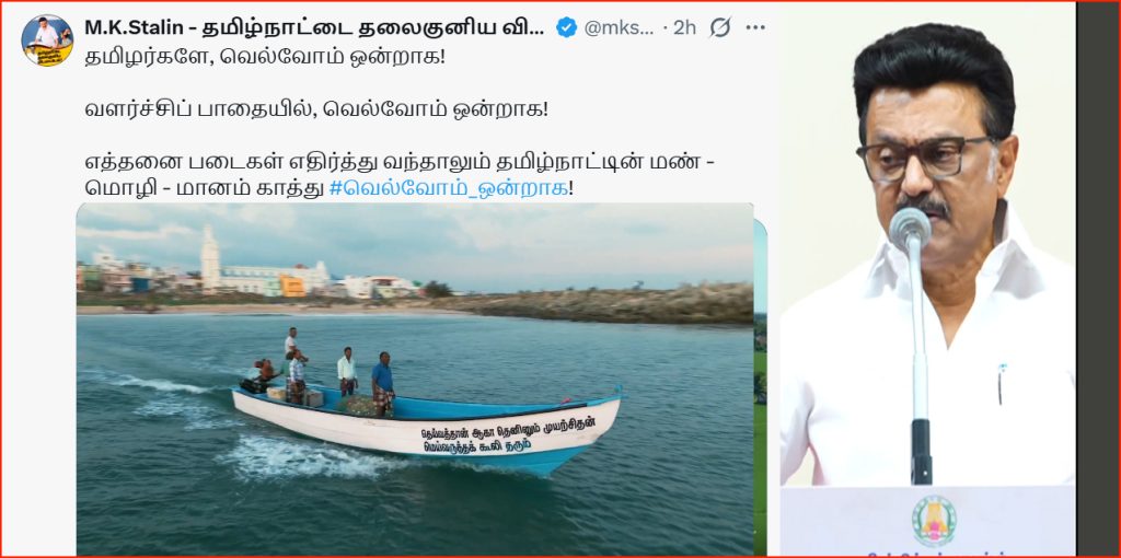 சென்னை: தமிழர்களே வளர்ச்சிப் பாதையில், வெல்வோம் ஒன்றாக என முதலமைச்சர் மு.க.ஸ்டாலின் தனது எக்ஸ் சமூக வலைதளத்தில் பதிவிட்டுள்ளார்.