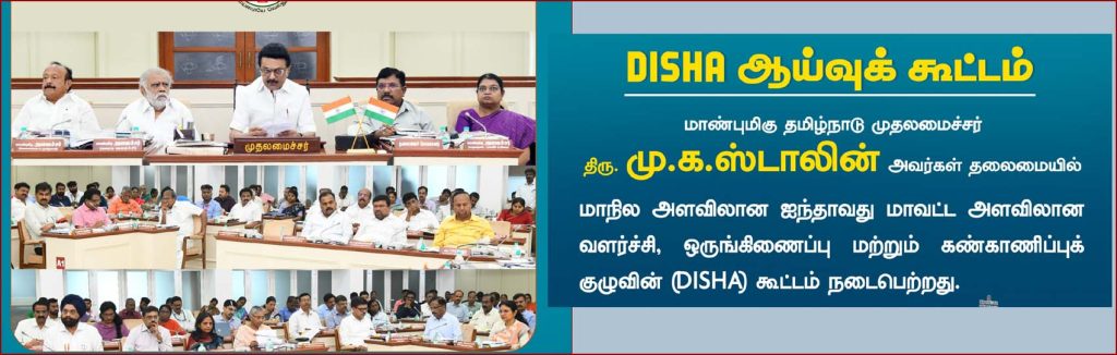 சென்னை  தலைமை செயலகத்தில் மாநில வளர்ச்சி ஒருங்கிணைப்பு குழு கூட்டம் (DISHA ஆய்வுக் கூட்டம்) முதல்வர் ஸ்டாலின் தலைமையில்  இன்று நடைபெற்றது. இன்று காலை முதல்வர் தலைமையில் நடைபெற்ற இந்த கூட்டத்தில்,   பல்வேறு அரசியல் கட்சிகளின் பிரதிநிதிகள் பங்கேற்றனர்.