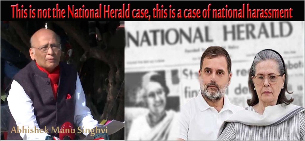 டெல்லி: காங்கிரஸ் தலைவர்கள், சோனியா, ராகுல்மீது, புதிய வழக்கு பதிவு செய்யப்பட்டுள்ளது, பாஜகவின் வெறி, பழிவாங்கும் நடவடிக்கை என்றும், இது தேசிய துன்புறுத்தல் வழக்கு என்றும் காங்கிரஸ் கட்சியின் மூத்த தலைவரும், பிரபல வழக்கறிஞருமான அபிசேங் மனு சிங்வி காட்டமாக விமர்சனம் செய்துள்ளார்.