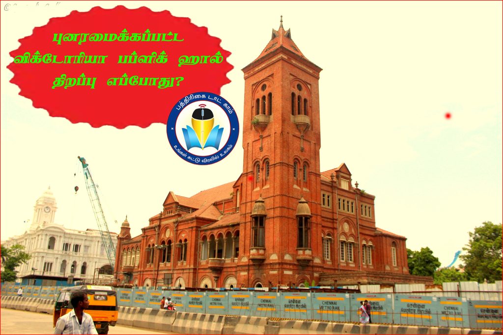 அதனால் விக்டோரியா ஹாலை பொது மக்கள் பயன்பாட்டிற்காக அடுத்த மாதம் முதலமைச்சர் ஸ்டாலின் திறந்து வைப்பார் என அதிகாரிகள் தெரிவித்துள்ளார்.