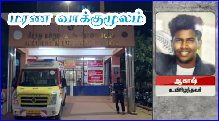 நீதிபதியிடம் அவர் அளித்த வாக்குமூலத்தின்போத, ஆகாஷின் வலது காலில் தொடை முதல் பாதம் வரை பெரிய அளவில் மாவுக்கட்டு (POP Bandage) போடப்பட்டிருந்ததாகவும், அவர் அளித்த வாக்குமூலத்தில் பல முக்கிய தகவல்கள் இடம்பெற்றிருந்ததாகவும் தெரிவிக்கப்பட்டுள்ளது. விபத்தில் காயம் என்று சொல்லச் சொல்லி போலீசார் மிரட்டியதாக நீதிபதியிடம் ஆகாஷ் தெரிவித்துள்ள நிலையில், இந்தச் சம்பவம் பெரும் பரபரப்பை ஏற்படுத்தியுள்ளது.