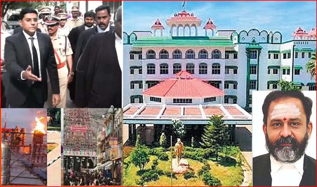 ‘மதுரை ஆட்சியர் நீதிமன்றத்தில் ஆஜர் திருப்பரங்குன்றம் விவகாரம் – மதுரை ஆட்சியர் நீதிமன்றத்தில் ஆஜர் மலை மீது தீபம் ஏற்ற பிறப்பித்த உத்தரவை எதிர்த்து கோயில் நிர்வாகம் தொடர்ந்த மேல்முறையீட்டு வழக்கில் மதுரை ஆட்சியர், மாநகர காவல் ஆணையாளர் உயர்நீதிமன்ற மதுரை அமர்வில் ஆஜர் ஆனார்கள். இந்த வழக்கின் விசாரணையின்போது, ”நீதிமன்ற உத்தரவை மீறுவதற்கு சட்டம் ஒழுங்கு என்பது காரணமாக இருக்க முடியாது. அப்படி நடந்தால் அரசியல் சட்ட இயந்திரம் முடங்க வழி வகுத்து விடும்,” என்று நீதிபதி ஜி.ஆர்.சுவாமிநாதன் அறிவுரை கூறினார்.