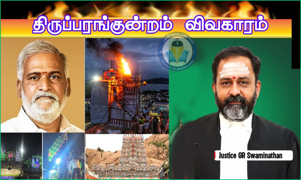 திருப்பரங்குன்றம் முருகன் கோயில் மலையில் தீபத்தூணில் தீபம் ஏற்ற சென்னை உயர்நீதிமன்ற கிளை நீதிபதி ஜி.ஆர்.சுவாமிநாதன் உத்தரவிட்டு இருந்தார். ஆனால் இரண்டு முறையும் அவர் உத்தரவிட்டும் மனுதாரர் ராம ரவிக்குமார் மலையில் தீபம் ஏற்ற தமிழக காவல்துறை மறுத்து விட்டது. தனி நீதிபதியின் உத்தரவால் சட்டம், ஒழுங்கு சீரழிந்து விடும் என தமிழக அரசு குற்றம்சாட்டி மறுப்பு தெரிவித்து விட்டது.