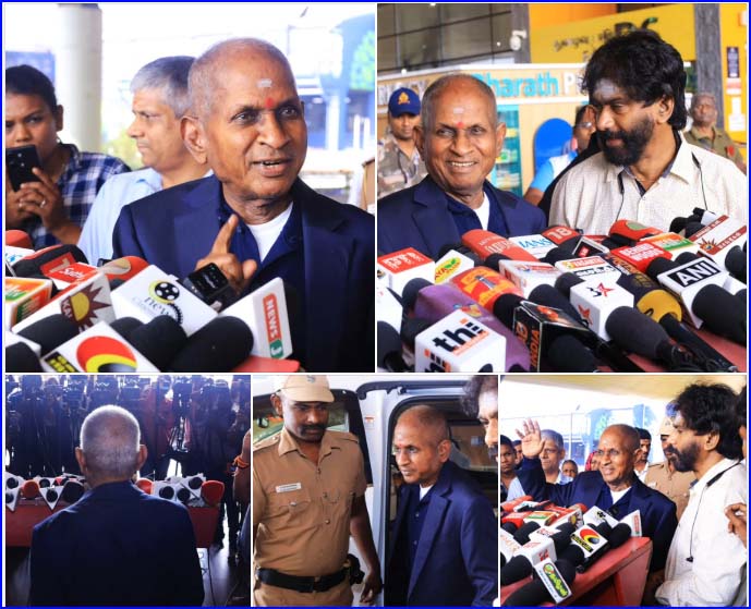 இதையடுத்து சில செய்தியாளர்கள் தொடர்ந்து கேள்விகளை எழுப்பினார். இதனால் கோபமடைந்த இளையராஜா, ‘அனாவசியமான கேள்விகளை என்னிடம் கேட்க கூடாது. நான் என்னுடைய வேலையில் மட்டும் தான் கவனம் செலுத்துகிறேன். நீங்கள் எல்லாம் சேர்ந்து தான் நான். உங்களுடைய பெருமையை தான் அங்க போய் நடத்த போகிறேன். எல்லோருக்கும் வாழ்த்துகள். இறைவன் அருள் எல்லோருக்கும் கிடைக்க வேண்டும்’ என தெரிவித்து விட்டு அங்கிருந்து சென்றார்.