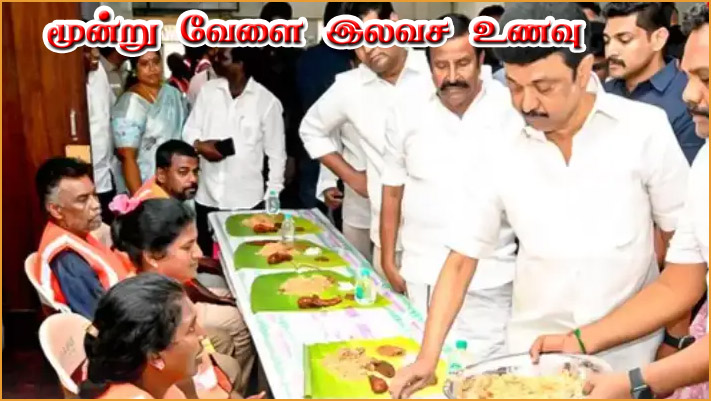 தூய்மை பணியாளர்களை சந்தோஷப்படுத்தும் வகையில், அவர்களுக்கு  விலையில்லா மூன்று வேலை உணவு வது வழங்கப்படும் என முதல்வர் ஸ்டாலின் அறிவித்த நிலையில், தற்போது அதற்கான அரசாணை வெளியிடப்பட்டு உள்ளது.