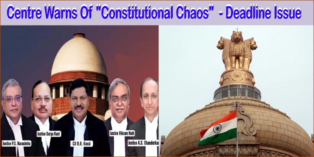 இதுதொடர்பாக மத்தியஅரசு உச்ச நீதிமன்றத்தில் எழுத்துப்பூர்வமாக சமர்ப்பித்த மனுவில் ஆளுநர்கள் மற்றும் குடியரசு தலைவருக்கு விதிக்கப்பட்டுள்ள இத்தகைய காலக்கெடு, அரசாங்கத்திற்கு வழங்கப்படாத அதிகாரங்களை அபகரிக்கும் ஒரு அங்கமாக இருக்கும், இதன் மூலம் நுட்பமான அதிகாரப் பிரிவினையை சீர்குலைக்கும் என்று, இது “அரசியலமைப்பு குழப்பத்திற்கு” வழிவகுக்கும் என்று எச்சரித்துள்ளது.
