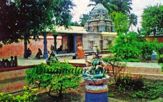 ஒரே கல்லில் ஆன தீபஸ்தம்பம், சனீஸ்வரர் சன்னதி. அதற்குப் பின்புறம் நவகிரகங்கள் மேடையில் காட்சியளிக்கின்றன. அவற்றைச் சுற்றி வந்தால் பைரவர் சன்னதி.