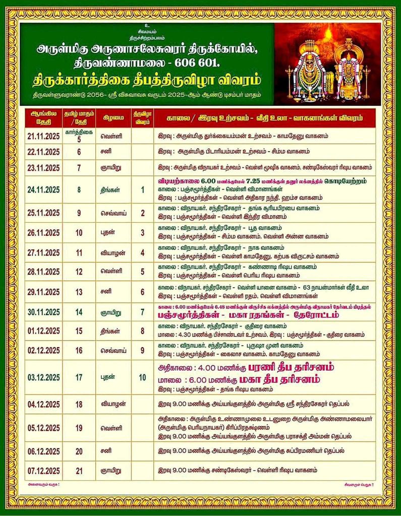 திருவண்ணாமலை திருக்கார்த்திகை தீபத் திருவிழா 2025 முழு விபரம்