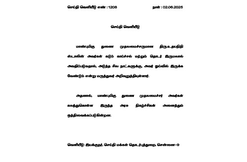 தமிழக அரசு வெளியிட்டுள்ள செய்திக்குறிப்பில் .