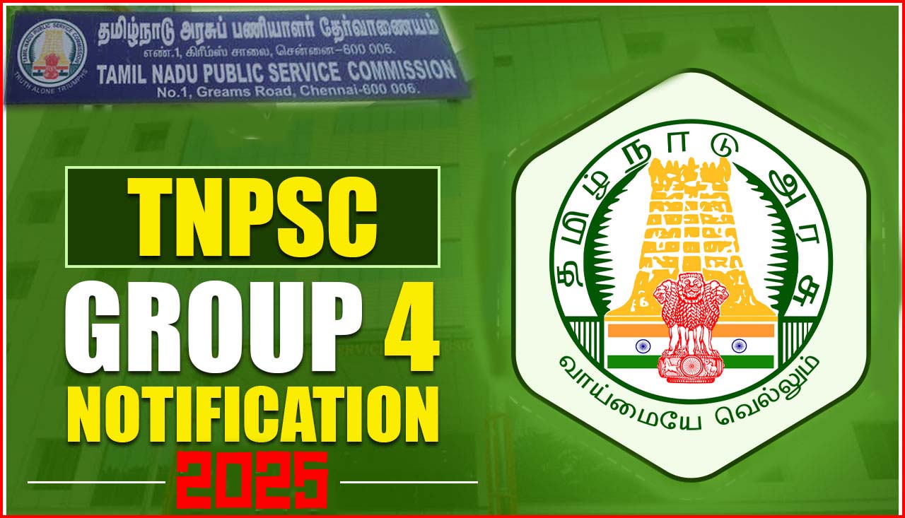 குரூப் 4 தேர்விற்கான அறிவிப்பு 25.04.2025 வெளியாகி, இதற்கான தேர்வு 13.07.2025 அன்று நடைபெறவுள்ளது.