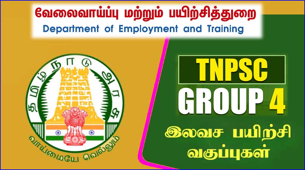 இந்த சூழலில் டிஎன்பிஎஸ்சி குரூப் 4 தேர்வு தொடர்பாக, வேலைவாய்ப்பு மற்றும் பயிற்சி துறை சார்பில் இலவச குரூப் 4 பயிற்சி வகுப்புகள் நடத்தப்பட இருக்கிறது. இது கலந்து கொள்ள விருப்பம் உள்ளவர்கள் கலந்து கொள்ளலாம் என அறிவிக்கப்பட்டுள்ளது.