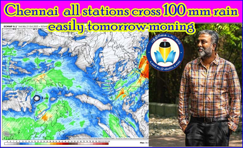 ‘தமிழ்நாடு வெதர்மேன்’ எனப்படுத் பிரதீப் ஜான், இன்று மாலை, தமிழ்நாட்டின் மழை குறித்து வெளியிட்டுள்ள பதிவில் பரபரப்பை தகவல்களை தெரிவித்துள்ளார். அதில், ஒவ்வொரு மழைக் கால இடைவெளியிலும் 20 முதல் 40 மி.மீ வரை மழை பதிவாகிறது. இதன் காரணமாக, நாளைய காலைக்குள் சென்னையின் அனைத்து மழை பதிவு நிலையங்களும் 100 மி.மீ மழையளவைத் தாண்டிவிடும் என்று குறிப்பிட்டுள்ளார்.