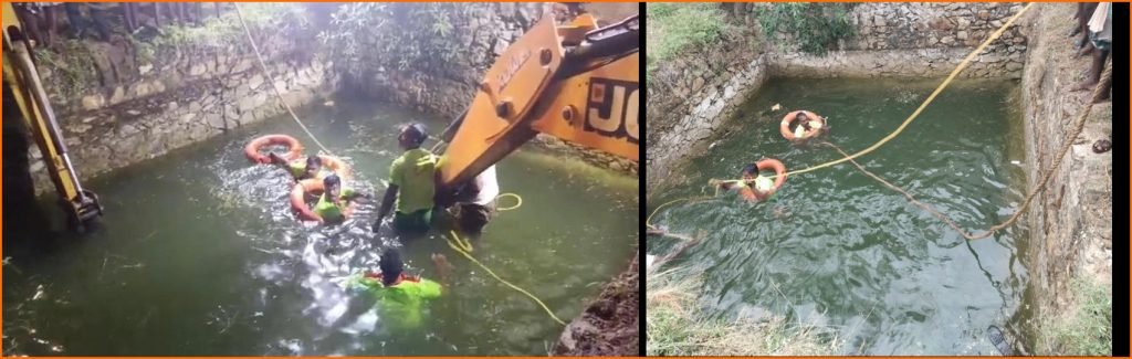 இதற்கிடையில், கிணற்றுக்குள் விழுந்த காரில் இருந்து சைனி கிருபாகரன், ஜெரின் எஸ்தர் ஆகிய 2 பேர் காரின் கதவை திறந்து வெளியேறி, பொதுமக்களை உதவிக்கு அழைத்தனர். இதையடுத்து கிராம மக்கள் உடனடியாக சாத்தான்குளம் தீயணைப்புத்துறைக்கு தகவல் தெரிவித்தனர். மேலும், தண்ணீரில் தத்தளித்துக் கொண்டிருந்த ஹெர்சோமை கிராம மக்கள் மீட்டனர்.