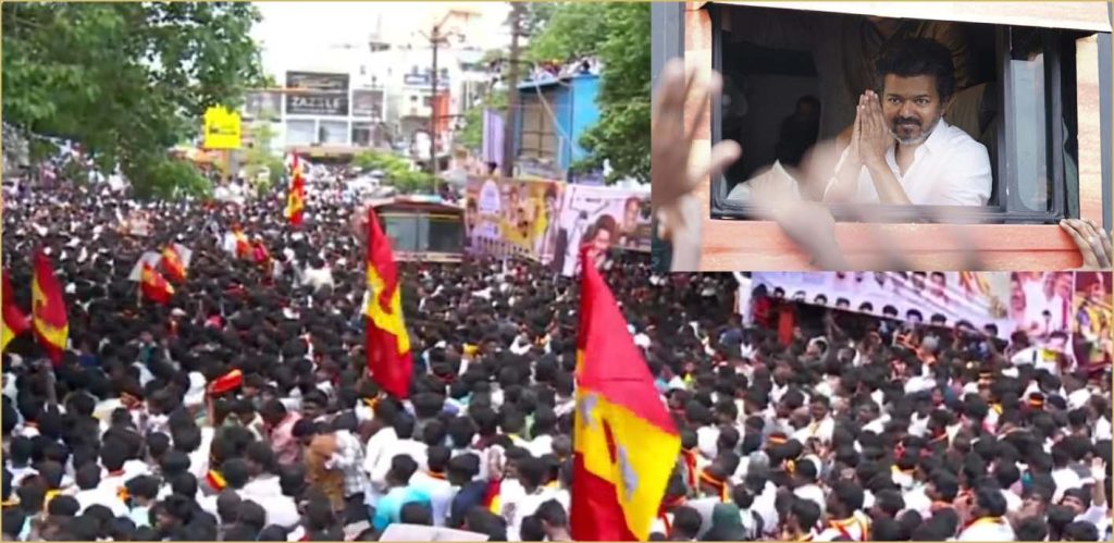விஜய் ரோடு ஷோவுக்கு திமுக அரசு தடை விதித்த நிலையில், அவரது பிரசார வாகனம் இன்று செல்வது ரோடு ஷோ போலவே மெதுவாக சென்று கொண்டிருக்கிறது. அவரை காண சாலையின் இருபுறங்களிலும் ஏராளமானோர் கூடி உள்ளனர். சாலையோரங்களில் மேளதாளங்களுடன் வரவேற்பு அளிக்கப்பட்டு வருகிறது.