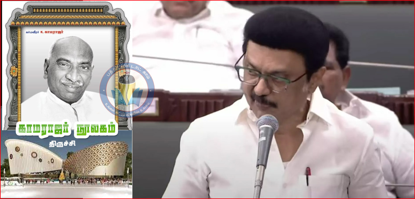 சென்னை: திருச்சியில் ரூ.290 கோடி மதிப்பில் கட்டப்பட்டு வரும் நூலகத்திற்கு காமராஜர் பெயர் வைக்கப்படும் என மானிய கோரிக்கை விவாதத்தின்போது, பேரவையில் முதல்வர் ஸ்டாலின் தெரிவித்தார்.