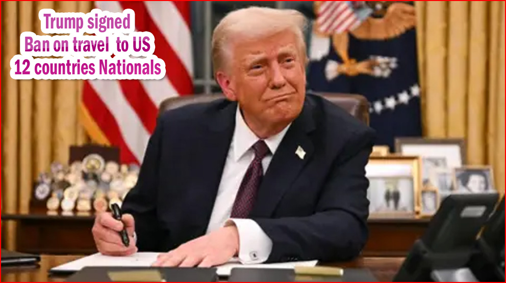 “வெளிநாட்டு பயங்கரவாதிகள்” மற்றும் பிற பாதுகாப்பு அச்சுறுத்தல்களிலிருந்து பாதுகாக்க இந்த நடவடிக்கை தேவை என்று கூறி, 12 நாடுகளின் குடிமக்கள் அமெரிக்காவிற்குள் நுழைவதைத் தடை செய்யும் ஒரு பிரகடனத்தில் அமெரிக்க ஜனாதிபதி டொனால்ட் டிரம்ப் புதன்கிழமை கையெழுத்திட்டார்.