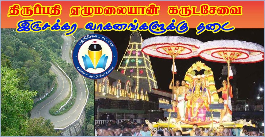 திருமலை: ஏழுமலையான் கோவில் கருட சேவையை முன்னிட்டு இன்றுமுதல் திருப்பதி மலைபாதையில் இருசக்கர வாகனங்களுக்கு தடை விதிக்கப்படுவதாக அறிவிக்கப்பட்டுள்ளது.