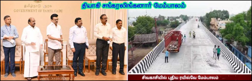 விருதுநகர்: சிவகாசி ஸ்ரீவில்லிபுத்தூர் ரயில் நிலையங்களுக்கிடையில் இடையே கட்டப்பட்டுள்ள மேம்பாலத்தை திறந்து வைத்த முதல்வர் ஸ்டாலின், அந்த மேம்பாலத்து தியாகி சங்கரலிங்கனார் மேம்பாலம்”  என  பெயர் சூட்டினார்.