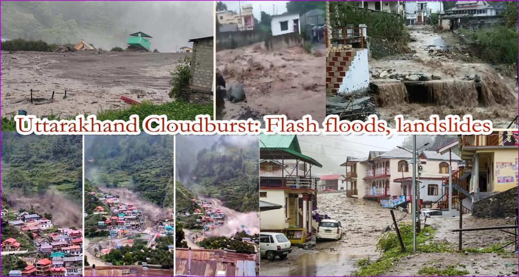 உத்தரகாசி மாவட்டம் தரலி என்ற பகுதியில் கீர் கங்கா ஆற்றில் மேகவெடிப்பால் கடுமையான வெள்ளப்பெருக்கு ஏற்பட்டது. உத்தரகாசி-ஹர்சில் சாலையை திடீர் வெள்ளம், நிலச்சரிவுகள் அடைத்தன; திடீரென ஏற்பட்ட காட்டாற்று வெள்ளத்தால் பலர் மண்ணில் புதைந்ததாக தகவல் வெளியாகி உள்ளது. அவர்களை தேடும் பணியில், மாநில மற்றும் தேசிய பேரிடர் மீட்பு படையினர் மீட்பு பணிகளில் தீவிரமாக ஈடுபட்டுள்ளனர். பல பகுதிகளில் சாலைகள் துண்டிக்கப்பட்டு உள்ளன.