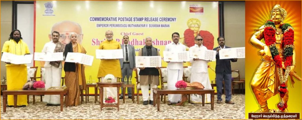டெல்லியில் நடைபெற்ற நிகழ்வில், 7ஆம்-9ஆம் நூற்றாண்டுகளில் தமிழகத்தை ஆண்ட பேரரசர் பெரும்பிடுகு முத்தரையர் II-ன் நினைவாக வெளியிடப்பட்ட அஞ்சல் தலையை துணைகுடியரசு தலைவர் வெளியிட்டு, தமிழ் கலாச்சாரத்துக்கு அரசு அளிக்கும் அங்கீகாரத்தைப் பாராட்டினார்.