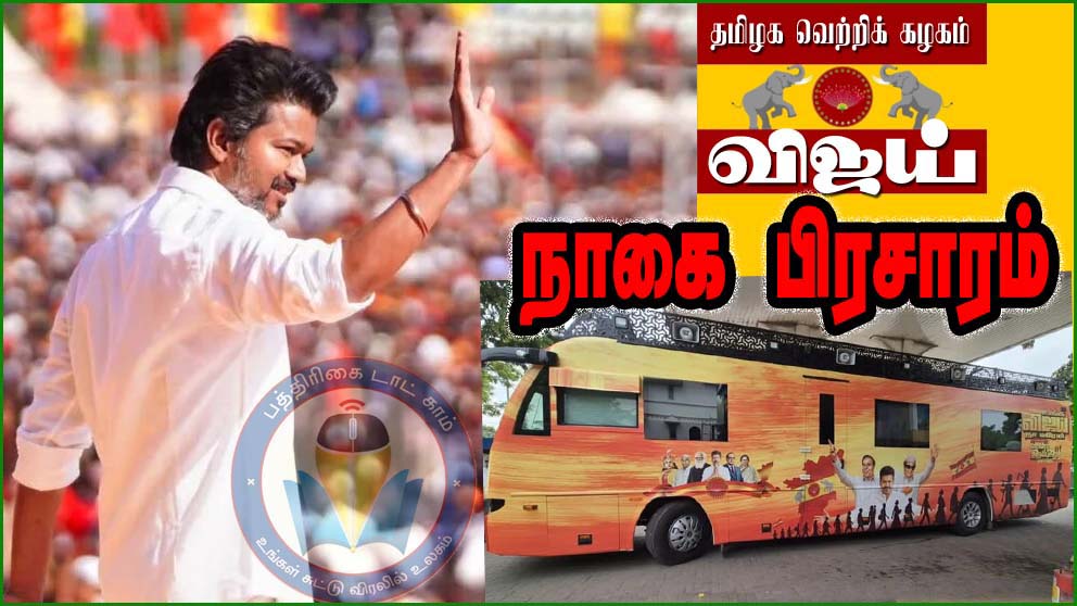 “மக்கள் விரும்பும் முதல்வர் வேட்பாளர், தமிழக வெற்றிக் கழகத் தலைவர் விஜய்யின் மக்கள் சந்திப்பு நிகழ்ச்சி, நாளை நாகப்பட்டினம் மாவட்டத்திலும், திருவாரூர் மாவட்டத்திலும் நடைபெற உள்ளது.  இன்று காலை 11மணி அளவில் நாகையில் அவரது பிரசார பயணம் தொடங்க உள்ளது. இதையடுத்து இன்று காலை 8.30 மணி அளவில் விஜய், அவரது பனையூர் இல்லத்தில் இருந்து விமான நிலையம் புறப்பட்டார். அங்கிருந்து தனி விமானத்தில் திருச்சி செல்லும் விஜய், அங்கிருந்து கார் மூலம் நாகை செல்கிறார்.